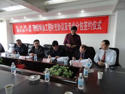 受青海水電集團(tuán)董事長唐增科的委托,副總經(jīng)理吳世周與中鐵隧道股份公司簽署了調(diào)水總干渠TBM段剩余工程補(bǔ)充協(xié)議,中鐵隧道股份公司與CMC公司簽署了調(diào)水總干渠TBM段剩余工程專業(yè)分包合同??偝邪恕⒎职舜矸謩e在儀式上發(fā)言,表示將把握好機(jī)遇,認(rèn)真履行義務(wù),全面落實分包合同,盡快擺脫TBM施工所處的困境,開創(chuàng)工程建設(shè)的新局面,不辜負(fù)項目業(yè)主的期望,為青海經(jīng)濟(jì)社會發(fā)展做出貢獻(xiàn)。簽約儀式的舉行,標(biāo)志著調(diào)水總干渠剩余工程建設(shè)進(jìn)入克難攻堅的關(guān)鍵階段。依照合同約定,CMC公司將在3月中旬進(jìn)場開展交接和設(shè)備改造等工作,為TBM恢復(fù)掘進(jìn)做好準(zhǔn)備。