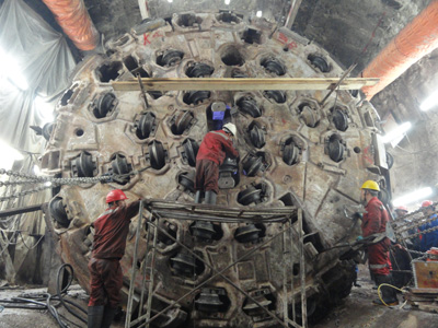 近一年多來,青海水電集團(tuán)在省委、省政府的正確領(lǐng)導(dǎo)和省水利廳、省引大濟(jì)湟工程建設(shè)管理局的關(guān)心支持下,進(jìn)一步堅定信心、迎難而上,加強(qiáng)現(xiàn)場管理,周密協(xié)調(diào)好各參建單位之間的關(guān)系,團(tuán)結(jié)協(xié)作、爭抓實(shí)干,持續(xù)改進(jìn)、攻堅克難,想盡一切辦法保證工程安全和質(zhì)量,盡一切可能加快施工進(jìn)度,為早日實(shí)現(xiàn)輸水隧洞貫通的目標(biāo)做出了最大的努力。特別是,堅持將加快出口段TBM解困、改造和人工開挖,以及進(jìn)口段TBM趕工作為施工管理的重中之重。在省政府召開會議專門研究確定輸水隧洞2014年底貫通的總目標(biāo)后,主要抓了以下幾個方面的工作:一是為破解工程施工難題尋求更多的技術(shù)支持,多次組織召開技術(shù)咨詢會,針對工程建設(shè)的突出難題,分析研判復(fù)雜地質(zhì)條件下隧洞施工技術(shù)方案,并對“加快出口段TBM解困及升級改造,利用TBM維修期間以人工鉆爆法向上游側(cè)開挖斷層帶160米,剩余洞段由TBM掘進(jìn)通過的”的總體施工思路進(jìn)行了論證和確認(rèn)。此后,又立即組織承包人編制了“采用人工鉆爆方法通過TBM卡機(jī)處前方160米復(fù)雜地質(zhì)洞段的上半洞斷面,下半斷面及隧洞剩余洞段直接采用TBM掘進(jìn)通過,隧洞貫通點(diǎn)確定為15+000”的方案。二是配合項(xiàng)目業(yè)主多次前往施工、設(shè)計方總部及其上級主管單位,溝通解決其服務(wù)過程中存在的問題,督促其切實(shí)提高認(rèn)識、履行職責(zé),加強(qiáng)資源配置,緊密協(xié)作、合力攻堅,并多次邀請施工承包人、分包人高層領(lǐng)導(dǎo)來現(xiàn)場解決問題,共同推動工程建設(shè)進(jìn)展。引導(dǎo)CMC公司改進(jìn)現(xiàn)場組織管理模式,敦促其加強(qiáng)內(nèi)部溝通協(xié)調(diào),形成項(xiàng)目經(jīng)理責(zé)、權(quán)、利相統(tǒng)一的運(yùn)行機(jī)制,進(jìn)一步加快TBM拆卸洞室開挖和拆卸工作進(jìn)度,有效扭轉(zhuǎn)了出口段施工停滯不前的局面。三是落實(shí)省政府關(guān)于制定工程質(zhì)量、進(jìn)度、安全、費(fèi)用及資金保障等“一攬子”整體推進(jìn)實(shí)施方案的要求,堅持求同存異、直面現(xiàn)實(shí),組織各方充分溝通和協(xié)調(diào),在工程建設(shè)現(xiàn)場管理的具體問題上達(dá)成了共識,就輸水隧洞剩余洞段施工形成了明確的、統(tǒng)一的方案,為各方齊心協(xié)力、積極作為,不折不扣地落實(shí)工作任務(wù)創(chuàng)造了有利條件。四是緊緊圍繞省政府決策部署和既定的總思路,加強(qiáng)現(xiàn)場組織管理和協(xié)調(diào)服務(wù),加大監(jiān)理、質(zhì)檢工作力度,特別是督促中隧股份履行合同職責(zé),發(fā)揮好主體作用,就出口段斷層帶人工開挖、不良地質(zhì)洞段加固處理等方面加強(qiáng)與CMC公司高層的溝通和配合,共同研究制定施工方案,在技術(shù)上、資金上給予大力支持。14個月來,利用一切可以利用的時間和空間,加快出口段F4-F5斷層帶人工清理工作,完成旁通洞第一、二段全部及第三段原線路和新線路的施工,完成TBM上部洞室、改造洞室開挖并支護(hù),并完成啟動洞室全部開挖支護(hù)工作,開挖支護(hù)主洞上半斷面近140米。五是著力加快出口段TBM改造升級工作,完成TBM各分系統(tǒng)硬件拆除、檢測及定制加式、維修、更新和安裝調(diào)試等一系列任務(wù), TBM于2014年9月12日重啟試掘進(jìn)。六是精心組織,充分發(fā)揮了進(jìn)口段TBM趕工作用。近14個月來,克服斷層帶不良地質(zhì)條件帶來的諸多困難,新增掘進(jìn)進(jìn)尺7.65千米,平均日進(jìn)尺超過18米。
