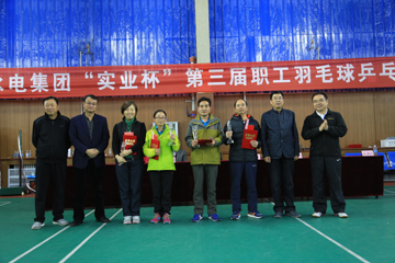 兩天來(lái),全體運(yùn)動(dòng)員在互助友愛(ài)、和諧文明的氛圍中, 頑強(qiáng)拼搏,奮勇?tīng)?zhēng)先,進(jìn)行了數(shù)十場(chǎng)緊張激烈的角逐,再一次展現(xiàn)了青海水電人優(yōu)良的身體素質(zhì)和精神風(fēng)貌。最后,格爾木水電(光電)公司代表隊(duì)、雪龍灘水力發(fā)電公司代表隊(duì)、聚能鈦業(yè)公司代表隊(duì)分獲乒乓球團(tuán)體賽前三名;格爾木水電(光電)公司代表隊(duì)、省水利水電工程局有限公司代表隊(duì)、雪龍灘水力發(fā)電公司代表隊(duì)分獲羽毛球團(tuán)體賽前三名;青海水電實(shí)業(yè)有限公司代表隊(duì)榮獲賽事“精神文明獎(jiǎng)”;王偉、李淑秀、趙玉江、李海、蘇學(xué)茂、辛翔、沈冬梅、李芳、侯秀艷、張玉萍等同志分別榮獲各單項(xiàng)比賽的冠軍。集團(tuán)公司領(lǐng)導(dǎo)、顧問(wèn)及冠名協(xié)辦單位主要領(lǐng)導(dǎo),在閉幕式上為獲獎(jiǎng)選手和團(tuán)隊(duì)頒獎(jiǎng)。