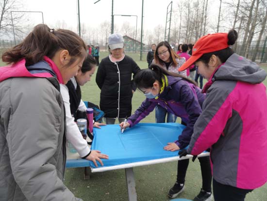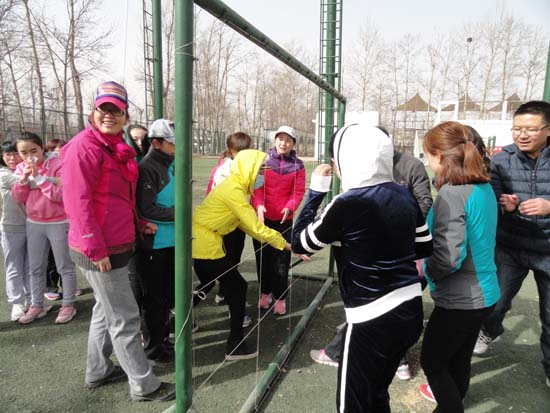 培訓當天,盡管天氣寒冷、黃沙漫天,但參訓隊員們個個精神抖擻,熱情高漲,訓練過程有條不紊進行?;顒娱_始時,進行了破冰熱身、團隊建設活動。全體隊員分為三組,在限定時間內(nèi)分別組建各自的隊名、隊歌、隊徽及口號。隨后,隊員們信心十足,高呼著團隊口號,在專業(yè)培訓師的指導下開始了充滿挑戰(zhàn)的拓展項目。大家相互協(xié)作,互幫互助,順利完成了 “高空斷橋”、“穿越電網(wǎng)”、“千里傳珠”、“盲人方陣”、“搶度金沙江”等拓展內(nèi)容。特別是在閉營項目“搶度金沙江”中,大家充分展示出團隊精神和挑戰(zhàn)困難的勇氣,使整個培訓活動達到了高潮。通過這些拓展項目,將挑戰(zhàn)自我,熔煉團隊,創(chuàng)造激情,強調(diào)奉獻,享受快樂的理念傳達給了每一位隊員。活動現(xiàn)場笑聲不斷,掌聲不斷,不僅使同志們感受到戶外運動的魅力,體會到溝通、協(xié)作的重要性,更引導大家以開放的心態(tài)面對變化,積極進取,啟發(fā)想象力與創(chuàng)造力,進一步提高了解決問題的能力,充分展現(xiàn)了水電女職工積極向上,團結(jié)進取的精神面貌。