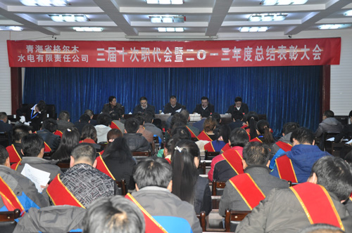 1月7日上午,青海省格爾木水電有限責(zé)任公司三屆十次職代會(huì)暨2013年度總結(jié)表彰大會(huì)隆重召開。青海水電集團(tuán)總經(jīng)理王海青,黨委副書記、工會(huì)主席李建民,集團(tuán)公司第二考核組全體成員出席會(huì)議。格水電公司總經(jīng)理于宗甲,常務(wù)副總經(jīng)理李建義,副總經(jīng)理支永新、閆永忠。會(huì)議由格水電公司黨委書記王新民同志主持。來自該公司各部門的代表、列席代表、優(yōu)秀共產(chǎn)黨員、勞動(dòng)模范和先進(jìn)集體代表110多人參加了大會(huì)。
