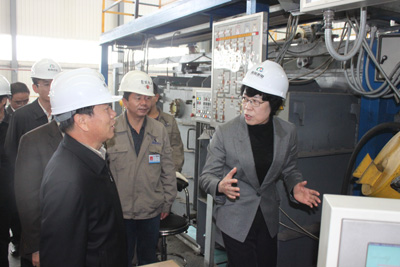 蘇寧同志一行首先來到青海水電集團(tuán)下屬青海聚能鈦業(yè)有限公司,登上電子束冷床(EB爐),仔細(xì)察看設(shè)備運(yùn)行和鈦錠熔鑄過程,詢問工藝流程、熔煉技術(shù)情況,了解鈦行業(yè)發(fā)展前景,體驗(yàn)一線工人的作業(yè)環(huán)境,并與職工及外籍技術(shù)人員一一握手交談,詢問他們的生活、工作及收入等情況,鼓勵(lì)他們?cè)俳釉賲枺瑸槠髽I(yè)和社會(huì)經(jīng)濟(jì)的發(fā)展添磚加瓦。